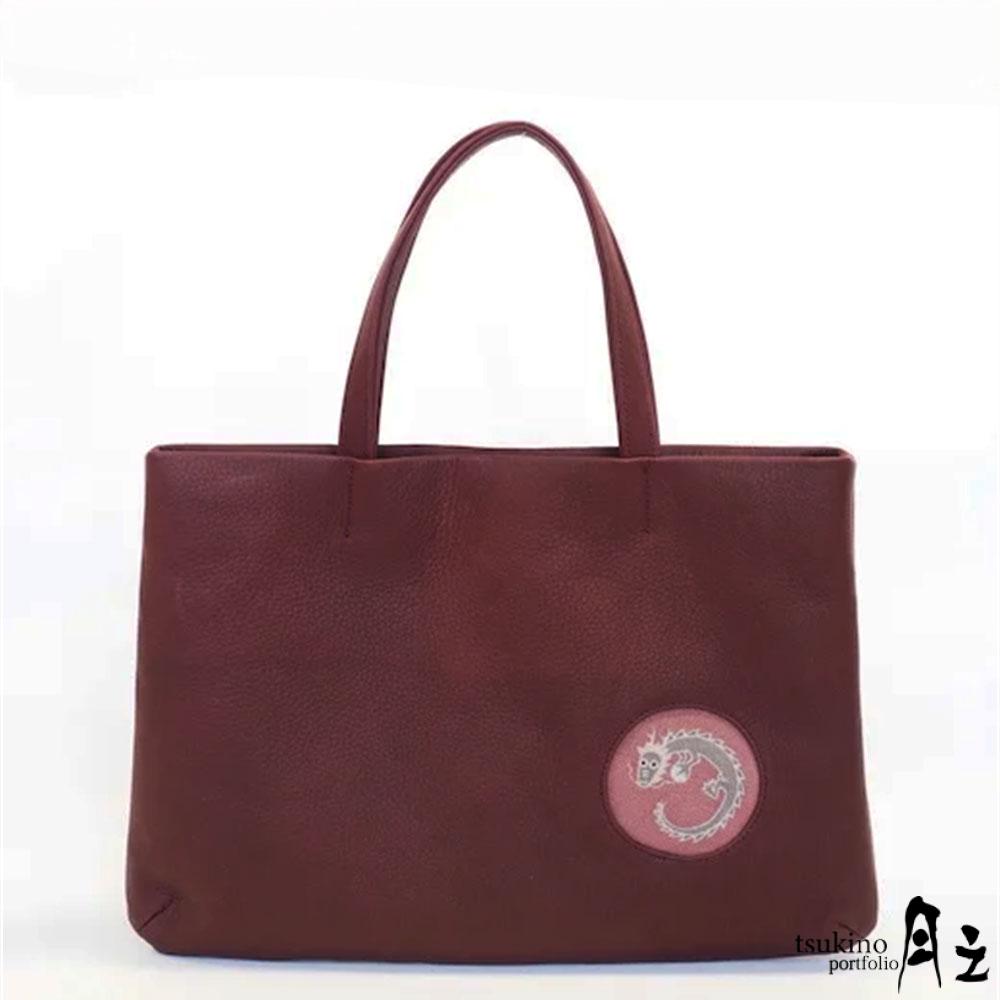 正面のすみっこに友禅作家・中野スズミさんによる、愛らしい染めものをレイアウト。使うたびチラリと顔を出すキャラクターに、ココロなごんでしまう癒やし系トートです。