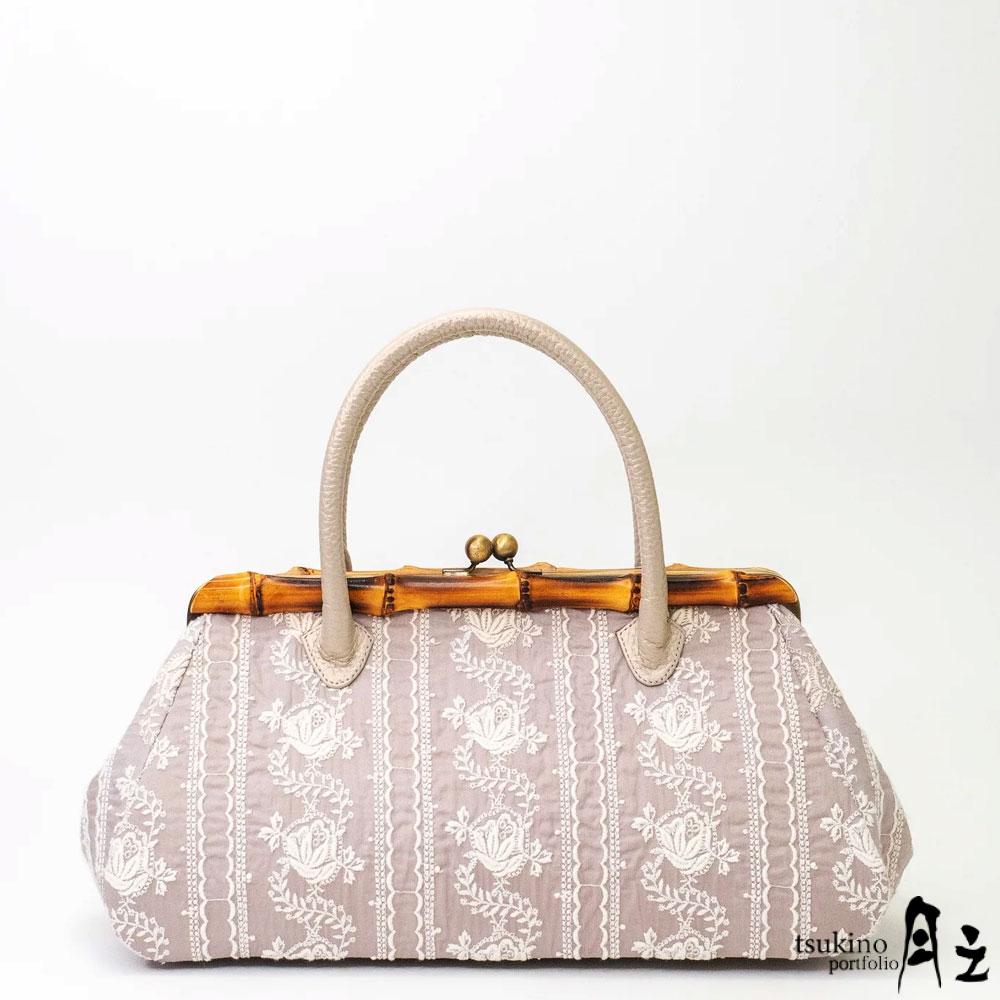 フォルムはかっちりとしたクラシカルスタイル。 ボディには月之が厳選した「モダンでかっこいい」素材を合わせて。お洋服でスタイリッシュに、現代的に、着物で持てば上品さと個性が際立つデザインに仕上げました。